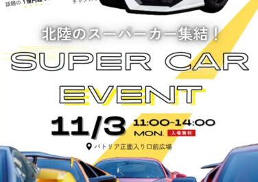 石川イベント能登南部開催 [11/3]SUPER CAR EVENT in パトリア!夢のスーパーカーが大集結!開催(能登七尾) 『SUPER CAR EVENT in パトリア!夢のスーパーカーが大集結!』が石川県七尾市の「パトリア」で2025年1... 2025.10.24 石川イベント能登南部開催