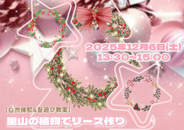 石川イベント能登南部開催 [12/6]自然体験&昔遊び教室『里山の植物でリース作り』がのと里山里海ミュージアムで開催(能登七尾) 自然体験&昔遊び教室『里山の植物でリース作り』が石川県七尾市の「のと里山里海ミュージアム」で2025年12月6日(土)に... 2025.11.18 石川イベント能登南部開催