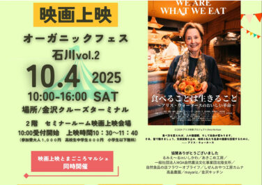 石川イベント金沢 [10/4]オーガニックフェス石川2025が金沢港クルーズターミナルで開催(金沢) 『オーガニックフェス石川2025』が石川県金沢市の「金沢港クルーズターミナル」で2025年10月4日(土)に開催されます... 2025.09.21 2025.10.08 石川イベント金沢