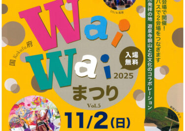 小松石川イベント開催 [11/2]Waiwaiまつり2025がハニベ巌窟院と里山みらい館で開催(小松市) 『WaiWaiまつり2025』が石川県小松市の「ハニベ巌窟院」と「里山みらい館」で2025年11月2日(日)に開催されま... 2025.10.15 小松石川イベント開催