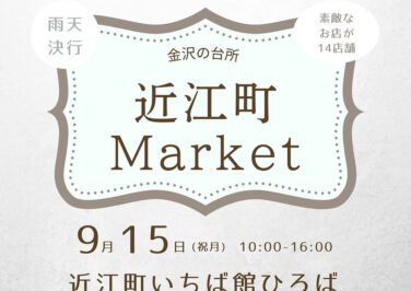 石川イベント金沢 [9/15]近江町マーケットが近江町いちば館広場で開催(金沢) 『近江町マーケット』が石川県金沢市の「近江町いちば館広場」で2025年9月15日(月祝)に開催されます近江町マーケット@... 2025.09.03 2025.09.18 石川イベント金沢