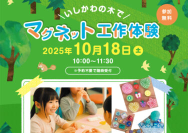 石川イベント金沢開催 [10/18]いしかわの木でマグネット工作体験が石川県立図書館で開催(金沢) 『いしかわの木でマグネット工作体験』が石川県金沢市の「石川県立図書館」で2025年10月18日(土)に開催されますいしか... 2025.10.15 石川イベント金沢開催