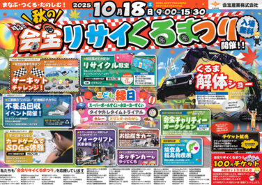 石川イベント開催 [10/18]第13回会宝リサイくるまつりが会宝産業株式会社で開催(金沢) 『第13回 会宝リサイくるまつり』が石川県金沢市の「会宝産業株式会社」で2025年10月18日(土)に開催されます第13... 2025.10.10 石川イベント開催