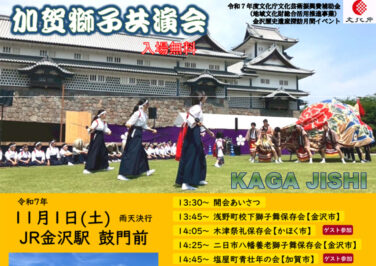 石川イベント金沢開催 [10/25-11/3]加賀獅子頭展示が金沢駅観光案内所で、11/1には加賀獅子共演会が金沢駅で開催(金沢) 『加賀獅子共演会』が石川県金沢市の「金沢駅もてなしドーム鼓門前」で2025年11月1日(土)に開催されますまた『加賀獅子... 2025.10.13 石川イベント金沢開催