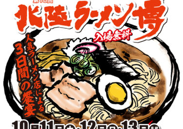石川イベント金沢開催 [10/11-13]第18回北陸ラーメン博が石川県産業展示館4号館で開催(金沢) 『第18回北陸ラーメン博』が石川県金沢市の「石川県産業展示館4号館」で2025年10月11日(土)から10月13日(月祝... 2025.09.30 石川イベント金沢開催