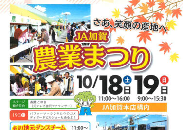 加賀石川イベント開催 [10/18-19]JA加賀農業まつりがJA加賀本店構内で開催(加賀) 『JA加賀農業まつり』が石川県加賀市の「JA加賀本店構内」で2025年10月18日(土)、10月19日(日)に開催されま... 2025.10.10 加賀石川イベント開催