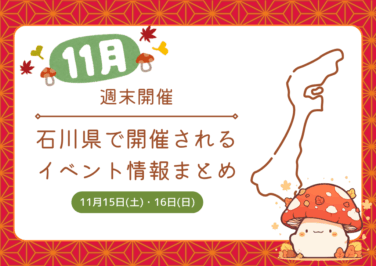 石川イベント週末開催イベント開催 石川県で今週末(11/15-16)開催のイベント情報まとめ 石川県で週末、11月15日(土)、11月16日(日)に開催されるイベント情報をまとめました11/15(土)、11/16(... 2025.10.23 2025.11.14 石川イベント週末開催イベント開催