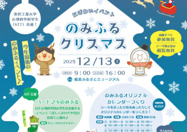 白山・能美石川イベント開催 [12/13]のみふるクリスマスが能美ふるさとミュージアムで開催(能美市) 『のみふるクリスマス』が石川県能美市の「能美ふるさとミュージアム」で2025年12月13日(土)に開催されますのみふるク... 2025.12.09 白山・能美石川イベント開催
