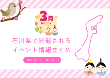 石川イベント週末開催イベント開催 石川県の週末イベント(3/7-3/8) 石川県で週末、2026年3月7日(土)、3月8日(日)に開催されるイベント情報をまとめました3/7(土)、3/8(日)開... 2026.02.25 2026.03.01 石川イベント週末開催イベント開催